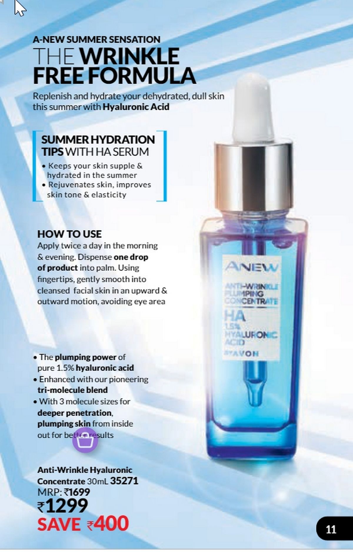 Everyone wants to look young forever. With this new product from Avon, now you can. The Youth-Awakening foundation transforms your skin such that it starts to look younger immediately after you begin to use the product. In only one week, the product makes your skin look more supple and soft. Fine lines and wrinkles disappear over time too. The product contains a combination of foundation and a special material known as anew. Approved by dermatologists, the Youth-Awakening foundation costs only $15.99 and can be seen on page 39 of the brochure.